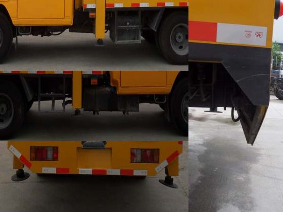 | 整車(chē)說(shuō)明: | 專用裝置前伸1070mm。側(cè)防護(hù)采用Q235A冷彎型鋼,螺栓連接;后防護(hù)與專用裝置連為一體,下邊緣離地高500mm。 | ||
