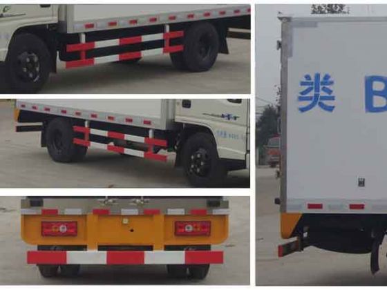 | 整車說明: | 車廂頂部封閉不可開啟。隨底盤選裝駕駛室。防護(hù)材料:Q235A碳鋼,連接方式:左右側(cè)面均與箱體底面采用焊接連接, 后部防護(hù)與車架采用焊接連接,后防護(hù)斷面尺寸(mm):50×110,后部防護(hù)離地高度(mm):395。 | ||
