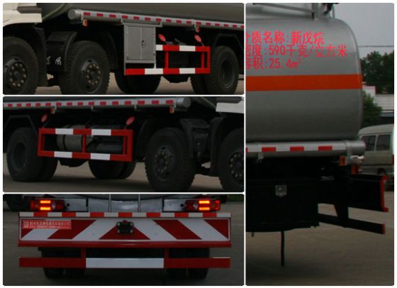 | 整車說明: | 罐體有效容積:25.4立方米,介質(zhì):新戊烷,類項(xiàng)號(hào):3,密度:590千克/立方米,,當(dāng)軸距為1700+4200和1800+4100毫米,整車長(zhǎng)為10150毫米時(shí),后懸2820毫米,離去角為10,罐體尺寸:長(zhǎng)7300毫米,長(zhǎng)軸2500毫米,短軸1780毫米.當(dāng)軸距為1700+5100和1800+5000毫米時(shí),整車長(zhǎng)為10830毫米,后懸2600毫米,離去角為12,罐體尺寸:長(zhǎng)8000毫米,長(zhǎng)軸2430毫米,短軸1680毫米.側(cè)、后防護(hù)裝置材料材質(zhì):Q235B,側(cè)、后防護(hù)均用螺栓連接,后部防護(hù)裝置斷面尺寸(寬×高)80×100(mm),后部防護(hù)離地高度:540mm.安裝具有衛(wèi)星定位功能的行駛記錄儀,安裝前輪盤式制動(dòng)器,僅采用底盤子午線輪胎.ABS廠家及型號(hào):東風(fēng)電子科技股份有限公司制動(dòng)系統(tǒng)公司,3631010-C2000,僅用ISDe210 40,ISB180 40,ISB210 40發(fā)動(dòng)機(jī),油耗值均為32.75L/100km. | ||