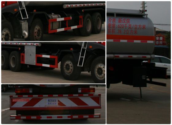| 整車說明: | 罐體有效容積:28.2立方米,介質:新戊烷,類項號:3,密度:620千克/立方米,罐體尺寸:長8500毫米,長軸2500毫米,短軸1700毫米.側、后防護裝置材料材質:Q235B,側、后防護均用螺栓連接,后部防護裝置斷面尺寸(寬×高)60×100(mm),后部防護離地高度:540mm.隨底盤選裝駕駛室,選裝罐體帶上護欄.安裝具有衛(wèi)星定位功能的行駛記錄儀,安裝前輪盤式制動器,僅采用底盤子午線輪胎.ABS生產廠家/型號:上海萬捷汽車控制系統(tǒng)有限公司/VIE ABS-II.CA6DF4-24E4對應油耗值45.5;BF6M1013-24E4對應油耗值45.7;BF6M1013-26E4對應油耗值45.9 | ||