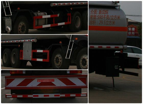 | 整車說明: | 罐體有效容積:29.5立方米,介質(zhì):新戊烷,類項號:3,密度:590千克/立方米.罐體外形尺寸長9000毫米,長軸2500毫米,短軸1750毫米.隨底盤選裝駕駛室.選裝尾部帶后爬梯.側(cè)、后防護(hù)裝置材料材質(zhì):Q235B,側(cè)、后防護(hù)均用螺栓連接,后部防護(hù)裝置斷面尺寸(寬×高)60×100(mm),后部防護(hù)離地高度:540mm.安裝具有衛(wèi)星定位功能的行駛記錄儀,安裝前輪盤式制動器,僅采用底盤子午線輪胎.ABS生產(chǎn)廠家:上海萬捷汽車控制系統(tǒng)有限公司,ABS型號: VIE ABS-II.油耗申報值45.1,45.4,45.1,45.5,45.3,45.5,45.7分別對應(yīng)CA6DF4-24E4,CA6DL1-26E4,CA6DK1-24E4,CA6DK1-26E4,BF6M1013-24E4,BF6M1013-26E4,BF6M1013-28E4發(fā)動機(jī). | ||