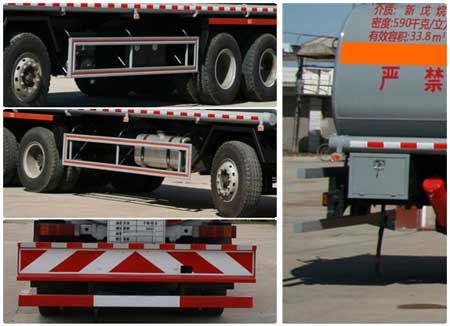 | 整車說(shuō)明: | 罐體有效容積:33.8立方米,介質(zhì):新戊烷,類項(xiàng)號(hào):3,密度:590千克/立方米,罐體尺寸:長(zhǎng)9150毫米,長(zhǎng)軸2500毫米,短軸1950毫米.隨底盤選裝駕駛室.側(cè)、后防護(hù)裝置材料材質(zhì):Q235B,側(cè)、后防護(hù)均用螺栓連接,后部防護(hù)裝置斷面尺寸(寬×高)60×100(mm),后部防護(hù)離地高度:540mm.安裝具有衛(wèi)星定位功能的行駛記錄儀,安裝前輪盤式制動(dòng)器,僅采用底盤子午線輪胎.,ABS系統(tǒng)生產(chǎn)廠家1:浙江萬(wàn)安科技股份有限公司,型號(hào):VIE ABS-Ⅱ,ABS系統(tǒng)生產(chǎn)廠家2:WABCO,型號(hào):4460043200. | ||