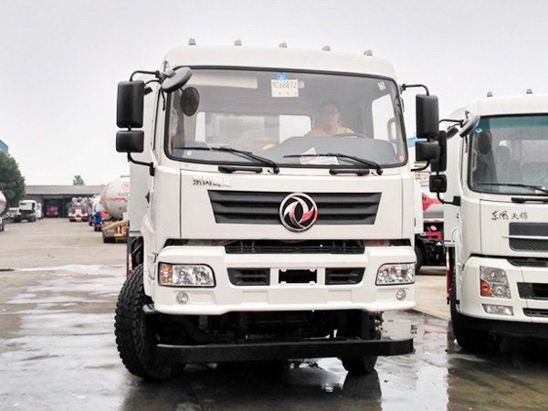 底盤配置:國五東風(fēng)御龍底盤,D913新款仿天錦玉白駕駛室、康明斯210馬力國五發(fā)動機(jī),小八檔變速箱,軸距4350+1300mm,280mm雙層大梁,前橋5噸、后10噸雙后橋,11.00R20鋼絲胎,ABS。